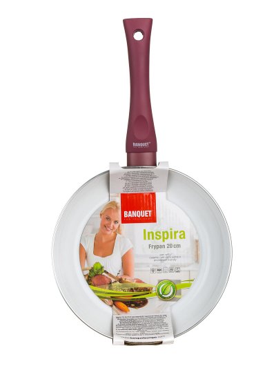 Hliníková pánev INSPIRA s vnitřní povrchovou keramickou úpravou. Rukojeť soft-touch je ve stejné barvě jako tělo pánve. Keramický povrch je na rozdíl od jiných nepřilnavých povrchů více odolný proti poškrábání a i při používání ve vysokých teplotách je povrch trvalejší. To napomáhá snadnějšímu vaření a údržbě. K vaření používejte dřevěné nebo plastové náčiní, aby nedošlo k poškrábání.