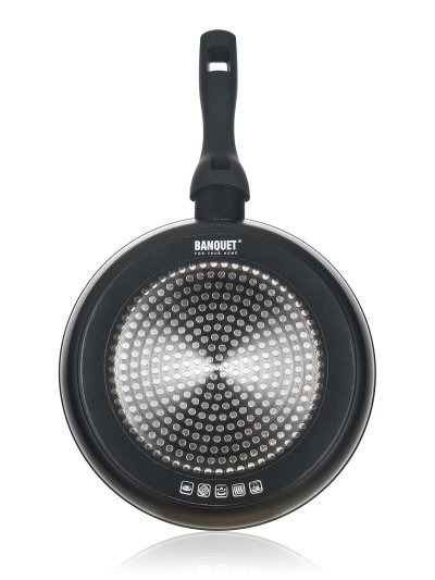 Hliníková kovaná pánev GRAZIA se značkovým nepřílnavým 3vrstvým povrchem ILAG PREMIUM. Vnější 2vrstvý žáruvzdorný nástřik. Indukční dno s piktogramovým laserovým potiskem.
