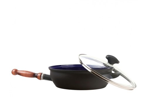 průměr: 26 cm odšroubovatelná rukojeť síla plechu: 2 mm průměr: 26cm výška: 8 cm bez dekoru vnitřní barva: speciální modrý smalt vnější barva: matná černá, hrubý povrch