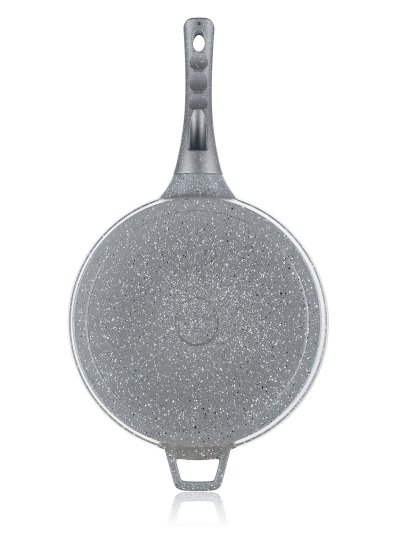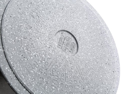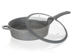 Hliníková hluboká pánev MARRONE o průměru 28 cm je opatřena vnitřním nepřilnavým povrchem, který zabraňuje připalování jídel při vaření. Pánev je vybavena skleněnou poklicí s knobem se silikonovým povrchem, který zajišťuje ochranu proti popálení při vaření. Ergonomická rukojeť se soft-touch povrchovou úpravou zaručuje snadnou manipulaci. Dno pánve je ošetřeno žáruvzdorným granitovým nástřikem. Pánev je dodávána v šedé barvě s granitovým dekorem.