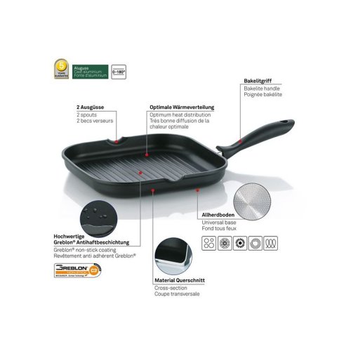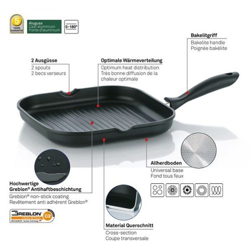 V naší nabídce najdete široký výběr grilovacích pánví, které jsou ideální pro přípravu vynikajících a zdravých jídel. Co vše můžete na grilovací pánvi připravit? Různé druhy masa, ryby, zeleninu, špízy a ovoce. Výsledkem bude šťavnaté, chutné a zdravé jídlo, které uspokojí mlsné jazýčky.