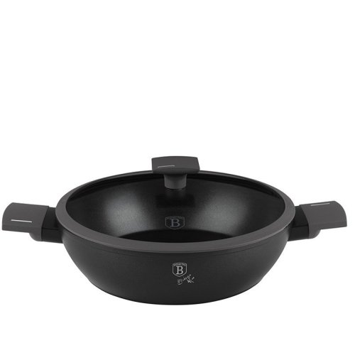 Tato hluboká pánev s poklicí je vyrobena z kovaného hliníku s nepřilnavou vrstvou TitanPro, která zajišťuje vysokou kvalitu a odolnost. Průměr pánve je 28 cm a její výška je 7,5 cm, s objemem 3,8 litru. Matná antracitová barva a minimalistický styl dodávají pánvi moderní vzhled, který se hodí do každé kuchyně. Ergonomické měkké rukojeti a úchyt poklice zajišťují pohodlné a bezpečné používání. Poklice je vyrobena z tvrzeného skla se silikonovým systémem soft close odolným proti teplu a má otvor na odvod páry.
