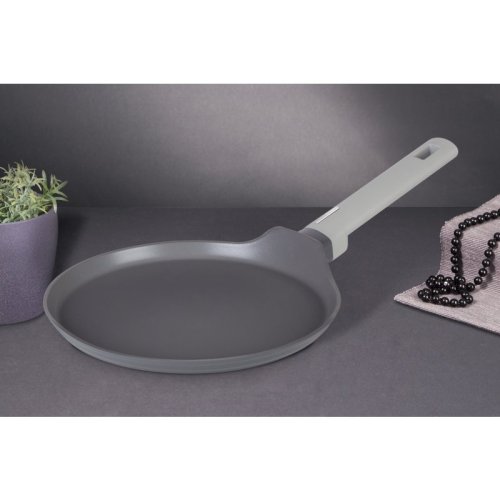Pánev na palačinky s titanovým povrchem v šedém designu Aspen Collection. Moderní minimalistický design pánve vás jistě zaujme hned na první pohled. Matný šedý povrch pánve je navíc velmi praktický při dlouhodobém používání. Vnitřní vrstva je potažena 3vrstvým titanovým povrchem, který je charakteristický svou dokonalou nepřilnavostí. Připravované pokrmy se tak nepřipalují a díky tomu se pánev velmi snadno čistí. Zároveň je vhodný pro zdravé vaření s minimem tuku nebo oleje, v závislosti na použitých surovinách klidně i bez jedinné kapky tuku. Titanový povrch, stejně jako ostatní použité materiály, neobsahují žádné škodlivé látky, vaření je tak zcela zdravé a hygienické. Zesílené Turbo indukční dno z nerezové oceli je kompatibilní se všemi druhy varných desek a spolehlivě funguje také na indukci. Jistě oceníte tepelně izolovanou rukojeť, která se při vaření nezahřívá a zůstává stále chladná. pánev Aspen je vhodná pro každodenní vaření, dušení i smažení, perfektně bude vypadat i při servírování hotových jídel přímo na váš stůl.