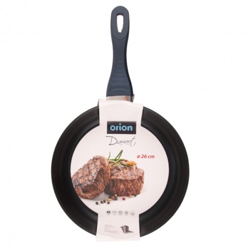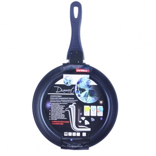 Pánev DIAMANT průměr 26 cm, výška 5 cm, síla stěny 3 mm, hmotnost 1.02 kg. Nepřilnavý povrch je zpevněný diamantovými krystaly. Tyto diamantové částice jsou obsažené ve vnitřní vrstvě a vynikají svou tepelnou vodivostí. Použitím revoluční výrobní technologie a zvolenými materiály nedochází k uvolňování nebezpečných látek (PFOA FREE). Snižují se tak škodlivé dopady na zdraví i životní prostředí. Dokonalá vodivost eliminuje ztrátu tepelné energie. Pánev lze používat na všechny typy spotřebičů. Je vhodná i do myčky nádobí. EAN 8592381082178