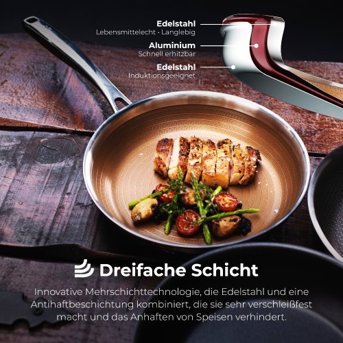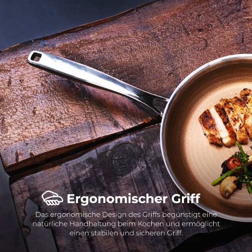 Stylová a výkonná pánev s unikátním povrchem – Nerezová pánev GIRO o průměru 20 cm vyniká nejen elegantním vzhledem, ale také špičkovou funkcionalitou. Díky nepřilnavému povrchu ILAG Ultimate se zlatým efektem je ideální pro každodenní vaření bez připalování.