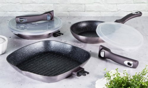 Univerzální velká pánev s nepřilnavým povrchem s mramorovým designem a odnímatelnou rukojetí v atraktivním designu Carbon PRO. Pánev je potažena 3vrstvým mramorovým povrchem, který je charakteristický svou dokonalou nepřilnavostí, připravované potraviny se nepřipalují a díky tomu se pánev velmi jednoduše čistí. Zároveň je vhodný pro zdravé vaření s minimem tuku nebo oleje, v závislosti na použitých surovinách klidně i bez jediné kapky tuku. Jedním stisknutím tlačítka lze odnímatelnou rukojeť z pánve sundat a tu poté vložit k dopékání nebo rovnou k pečení do trouby. Nasazení a odejmutí rukojeti zvládnete jednoduše jednou rukou. Jistě to oceníte také při skladování nebo údržbě. K pánvi je navíc praktické víčko, kterým ji lze uzavřít.