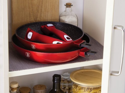 Univerzální středně velká pánev s nepřilnavým povrchem s mramorovým designem a odnímatelnou rukojetí v atraktivním designu Burgundy Metallic. Pánev je potažena 3vrstvým mramorovým povrchem, který je charakteristický svou dokonalou nepřilnavostí, připravované potraviny se nepřipalují a díky tomu se pánev velmi jednoduše čistí. Zároveň je vhodný pro zdravé vaření s minimem tuku nebo oleje, v závislosti na použitých surovinách klidně i bez jediné kapky tuku. Jedním stisknutím tlačítka lze odnímatelnou rukojeť z pánve sundat a tu poté vložit k dopékání nebo rovnou k pečení do trouby. Nasazení a odejmutí rukojeti zvládnete jednoduše jednou rukou. Jistě to oceníte také při skladování nebo údržbě. K pánvi je navíc praktické víčko, kterým ji lze uzavřít.
