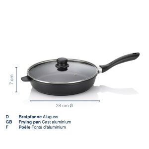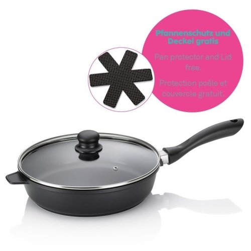 Hliník, 28 cm, 7 cm v se skleněnou poklicí včetně 1x ochrany hrnce 35 cm