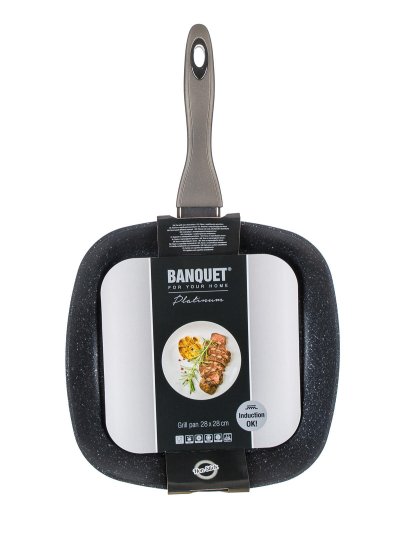 Hliníková litá kovaná steaková pánev METALLIC PLATINUM s nepřílnavým povrchem. Vnější karbon metalický nástřik, plně indukční dno, soft - touch rukojeť. Nepřilnavý povrch je velmi tvrdý a odolný proti poškrábání. Pánev je odolná proti nárazu a deformaci tvaru. Vysoká tepelná vodivost zajišťuje rychlé a ekonomické vaření - dlouho drží teplotu.