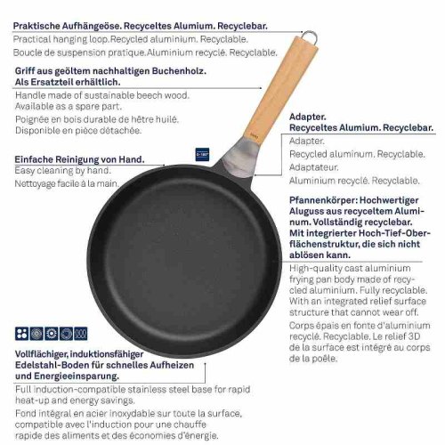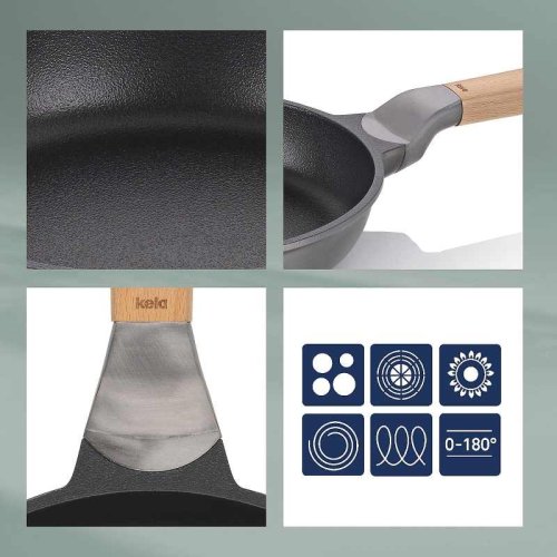 Vitana je robustní. Vitana je inovativní. Vitana je ECO-friendly. Nová série pánví Vitana od německé značky KELA s prodlouženou pětiletou zárukou zaručuje dokonalé výsledky při vaření, smažení i dušení. Robustní pánve mají inovativní, odolný nepřilnavý povrch, rukojeť z pravého bukového dřeva a navíc jsou kompletně recyklovatelné. Speciálně vyvinutý nepřilnavý povrch Vitana© s vlastností Oil Control System. Tento 3vrstvý nepřilnavý povrch je charakteristický svou hrubou strukturou, díky ní se tuk i šťávy z pokrmu nerozlévají pouze k okrajům pánve, ale rovnoměrně se distribuují po celé ploše pánve a zároveň pod pokrm, výsledkem jsou tak dokonale šťavnatá a křupavá jídla s výraznou chutí.- Celoplošné dno z ušlechtilé oceli vhodné i na indukci pro rychlé ohřívání a úsporu energie- Vhodná na všechny druhy varných desek- Díky masivnímu provedení ji můžete bez obav vložit do trouby do teploty 180°C- Čištění nepřilnavého povrchu je velmi snadné, myjte ručně, jelikož je rukojeť z pravého bukového dřeva, myčka nádobí by mohla znehodnotit krásnou texturu přírodního dřevaPokud hledáte ekologickou pánev, která vám vydrží dlouhé roky, pánve z nové řady VITANA německé značky Kela jsou tou pravou volbou! Pánev, včetně obalu, je vyrobená z recyklovatelných materiálů, které mohou být znovu zrecyklovány. Všechny díly pánve se dají snadno vyměnit.- materiál: litý hliník s nepřilnavým povrchem a dřevěnou rukojetí- indukce: ano- elektrika: ano- sklokeramika: ano- plyn: ano- trouba: 180 °C- průměr: 32 cm- výška: 6,5 cm- značka: KELA