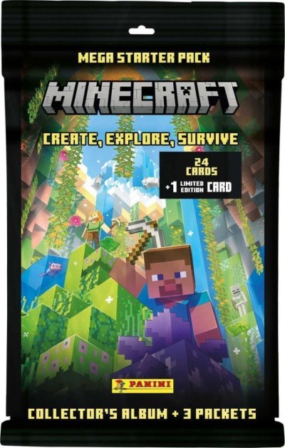 Startovací sada Minecraft 3 obsahuje: sběratelské album, 24 karet, 1 limitovanou kartu.