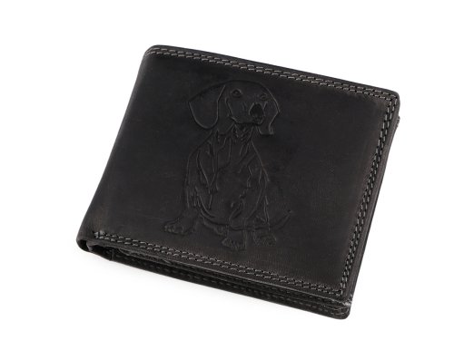 Pánská peněženka kožená pro myslivce, rybáře, motorkáře 9,5x12 cm - černá pejsek