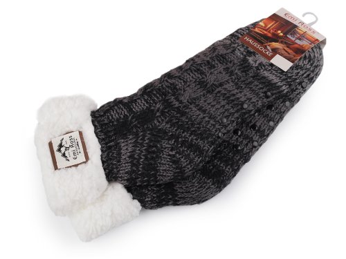 Maxi teplé ponožky [s copánkovým vzorem] nedají zimě šanci. Jsou heboučké, z vrchní strany pletené, uvnitř je teplá chlupatá podšívka, která věrně imituje vlnu. [Na bocích jsou ozdobené textilním štítkem.] Na chodidle mají protiskluzové gumové plošky, které brání uklouznutí, můžete je používat i jako domácí obuv. Široký měkký lem je příjemný na nošení.