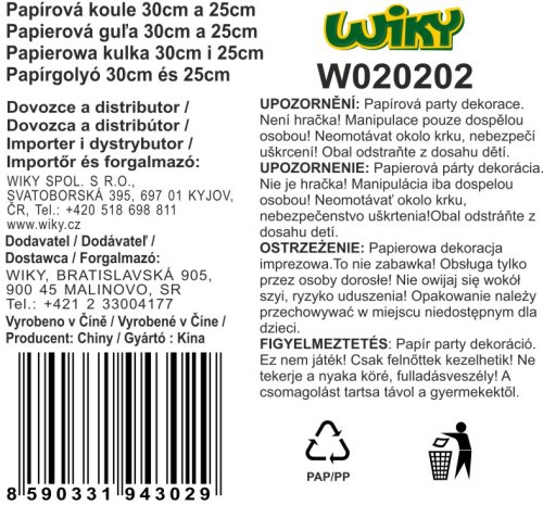 Set papírová koule 2ks, 30 a 25 cm, na zavěšení, vícebarevné