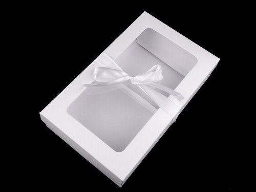 Krabička s průhledem a [saténovou] stuhou je díky svému přírodnímu vzhledu elegantním řešením pro dárkové balení k jakékoli slavnostní události. Dodáváme ji v rozloženém stavu. [Barva stuhy je bílá a tmavá pudrová.] Rozměr průhledu je 11,5 x 22,5 cm. [Připravili jsme pro vás foto návod na skládání krabičky.]