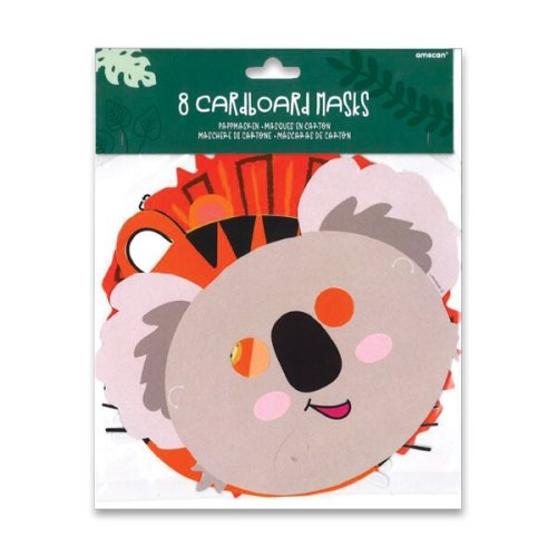 Papírové masky s tématickým potiskem 4 druhů zvířat. Balení obsahuje 8 kusů.