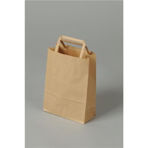 • Jednobarevná hnědá papírová taška s plochými uchy, ideální řešení pro balení, které je praktické a zároveň šetrné k životnímu prostředí