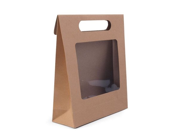 Dárková taška je vyrobená z kvalitního pevného papíru. Na přední straně je plastový průhled [o rozměrech 11 x 11 cm.] Taška má vyřezané ucho na pohodlné nošení. Do tašky můžete zabalit a [naaranžovat předměty s nízkou hmotností, například drobnou kosmetiku, šátky, rukavice či různé lehké dekorace.] Jste-li kreativní, můžete ji pomalovat nebo na ni nalepit flitry, glitry, krajku, samolepicí ozdoby apod.