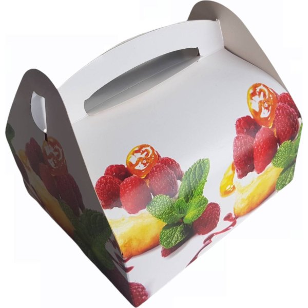 Papírová taštička Palermo poslouží k nošení jednohubek, chlebíčků i zákusků bezpečně. Rozměry 20 x 18 cm.