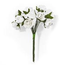 papírové růžičky na stonku (drátku) délka drátku cca 8,2 cm průměr květu cca 1,5 cm 12 ks v balení vhodné jako dekorace pro cardmaking, scrapbooking barva bílá upozornění: Nevhodné pro děti do 3 let.