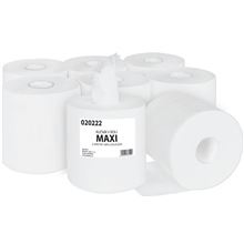 Papírové ručníky v roli ze 100% celulózy Extra bílé 2vrstvé Středové odvíjení Průměr role 19 cm Šíře role 19,5 cm Počet útržků v roli 652 Balení 6 rolí Návin 150 m