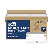 Jemné papírové ručníky Tork Singlefold s vysokou absorpční schopností Tork systém H3, 2 vrstvé bílé ZZ ručníky Rozměr ručníku: 23,0 x 22,6 cm Materiál recykl 250 ks v balíčku Množství v originálním balení …