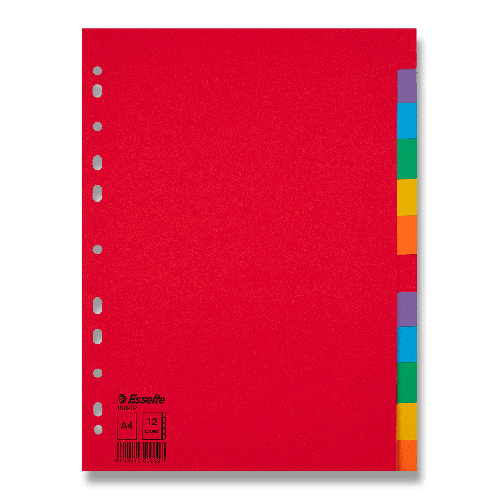 Papírový rozlišovač s univerzálním děrováním. Formát A4. 12 listů v sadě,Cena za sadu.