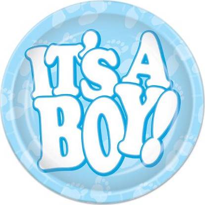 Papírový talíř Je to kluk! Balení 10 ks, průměr 23 cm.
