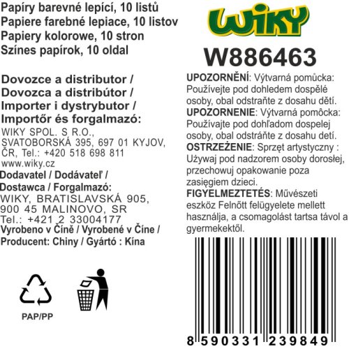 • Lepící papíry • Formát: A4 • Počet listů: 10 (10 barev)