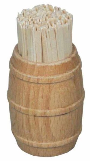 Břízový soudek průměr 35 mm a výška 50 mm, výška i s párátky 65 mm. Baleno v igeitu. Český výrobce. EAN 8594974012623