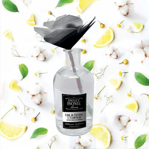 Aroma difuzér s vůní bavlny a kašmíru dokonale provoní váš domov. Skleněná lahvička, která v sobě ukrývá vonnou esenci se perfektně doplňuje s dřevěnou květinou. Velikost difuzéru je vhodná do středních místností.