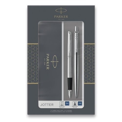 Souprava plnicí pero a kuličkové pero. Tělo a víčko z broušené nerezové oceli. V kombinaci s klipem pokoveným chromem, s leštěnou úpravou. Hrot z nerezové oceli.