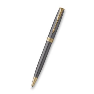 Dárková kazeta obsahuje:, * kuličkové pero Parker Sonnet Core Grey GT, * černé kožené pouzdro Parker, * voucher Akademie psaní