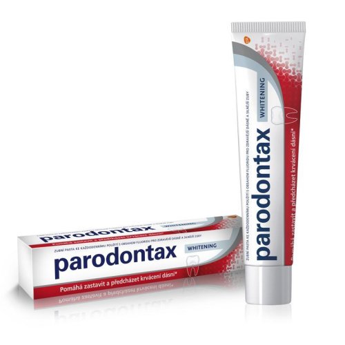 Pravidelné používání zubní pasty Paradontax Whitening pomáhá předcházet krvácení dásní. Zároveň šetrně, ale efektivně, odstraňuje zabarvení zubů a obnovuje tak jejich přirozenou bělost.