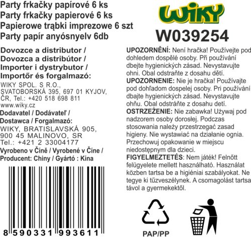 Papírové párty frkačky PASTEL. Balení obsahuje 6 ks.