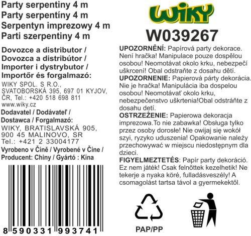Papírové párty serpentíny BALÓNKY o délce 4 m.