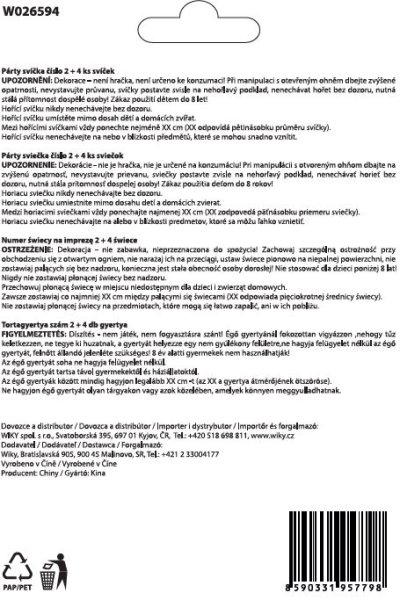 Párty svíčka číslo 2 + 4ks svíček - mix variant či barev