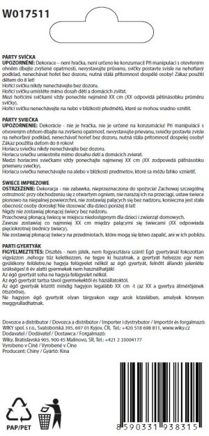 Párty svíčka ve tvaru čísla 6. Dekorace