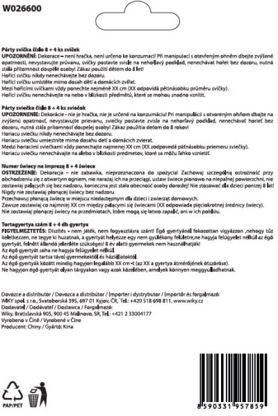 Párty svíčka číslo 8 + 4ks svíček - mix variant či barev