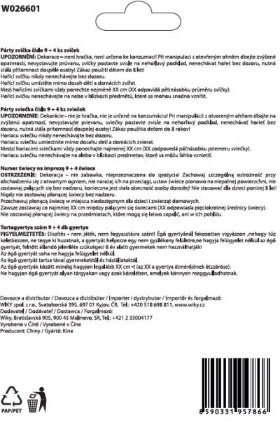 Párty svíčka číslo 9 + 4ks svíček - mix variant či barev
