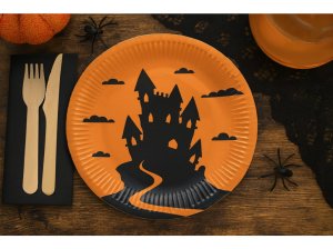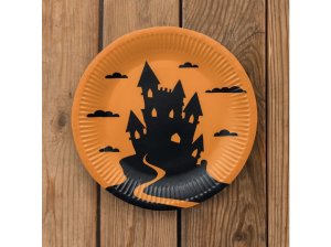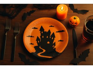Papírové talířky s vtipnými motivy dýní, duchů a netopýrů v pestrých barvách. Skvělé pro dětské halloweenské oslavy. Průměr 23 cm, balení obsahuje 8 kusů.