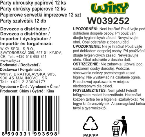 Papírové párty ubrousky PASTEL o velikosti 33x33 cm. Balení obsahuje 12 ks.