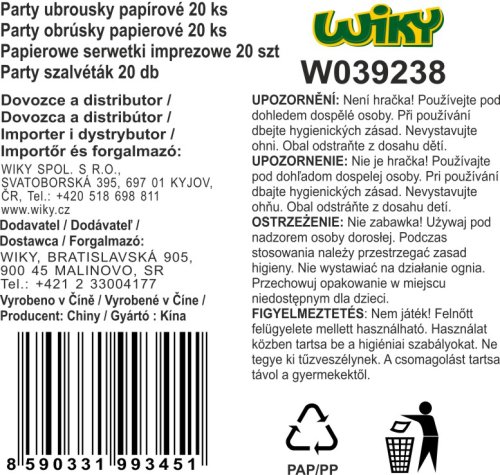 Papírové párty ubrousky PES o velikosti 33x33 cm.