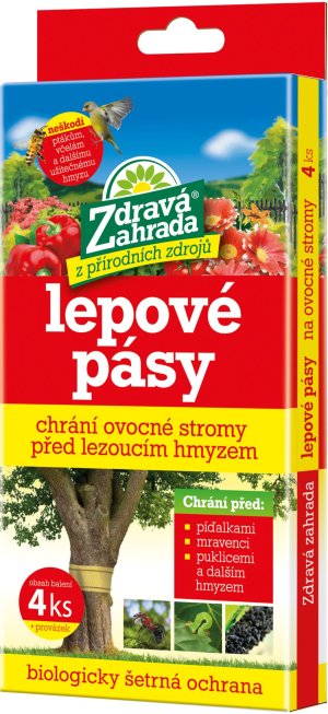 Lepové pásy chrání ovocné stromy před lezoucím hmyzem - před píďalkami, mravenci, puklicemi a dalším hmyzem. Jedná se o biologicky šetrnou ochranu stromů před napadením lezoucími škůdci. Rozměry pásu: 15 x 50 cm. Balení: 4 ks.