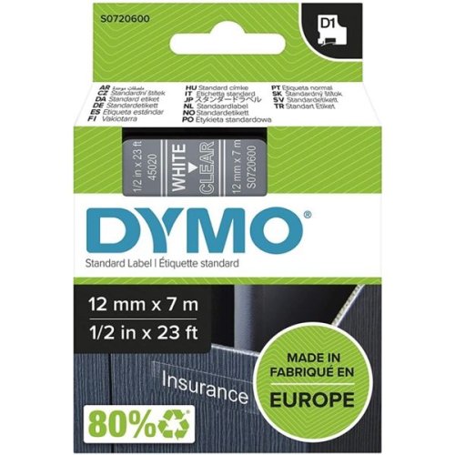 Páska Dymo D1 šíře 12 mm, tranparentní/bílá