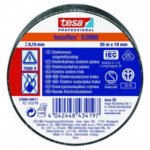 Páska elektroizolační PVC 53988, IEC, 20 m x 19 mm, černá, TESA