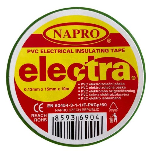 Páska elektroizolační PVC IZOVIAL, 10 m x 15 mm, žluto-zelená