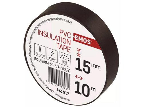 šířka: 15 mm délka: 10 m tloušťka: 0,13 mm materiál: PVC barva: hnědá pevnost v tahu: 150 N/10 mm elektrická pevnost minimálně: 40 kV/mm prodloužení minimálně: 125 % elektrická pevnost po vlhku minimálně: 35 kV/mm zkouška plamenem: přilnavost k oceli minimálně: 1,8 N/10 mm přilnavost k podkladu: 1,5 N/10 mm doporučená skladovací teplota: 10–45 °C rozsah instalačních teplot: -25–90 °C splňuje směrnici ROHS splňuje směrnici REACH vyhovuje normě: ČSN EN 60454-3-1-2/F-PVC/60 odolné UV vodotěsný spoj materiál lepidla: kaučuk předpokládané použití: izolace kabelů