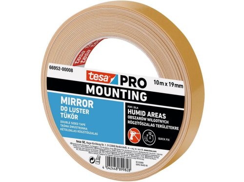tesa PRO Mounting Mirror je výbornou volbou pro profesionální řemeslníky, kterým zákazníci zakazují vrtat do zdí. Samolepicí páska nabízí spolehlivou fixaci i ve vlhkém prostředí koupelny. Trvanlivá páska drží na hladkém povrchu (např. na dlaždicích) a dokáže připevnit ploché objekty (např. zrcadla) s tloušťkou až 4 mm. S touto oboustrannou páskou splníte zákazníkům každé přání.
