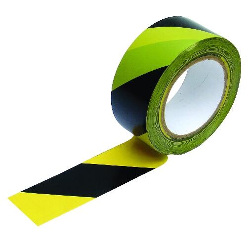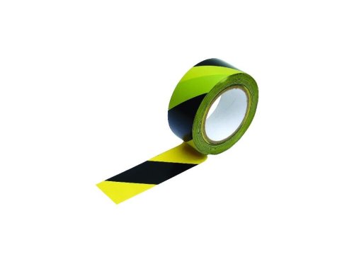 Délka návinu 33 metrů, šířka pásky 50 mm. PVC samolepící černožlutá páska s výstražnými černožlutými pruhy. Slouží k ohraničení nebezpečného prostoru, například výkopy, jízdní dráhy, vstupy do dveří, schodů apod. EAN 8590804029502